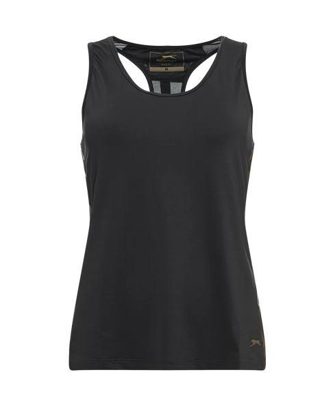 • Keep your cool and elevate your style when your games get hot with this straight fit, Sleeveless Top made of lightweight and breathable COOLMAX AIR fabric. The neckline combined with back pleat gives the piece a flattering silhouette. Detailed subtly with a golden Slazenger Panther logo on the lower left side.