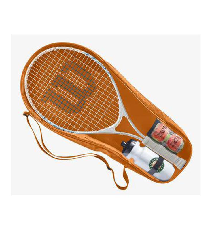 Coated with a sharp design inspired by the pinnacle of the clay court season, the Roland Garros Elite 25 blends power, control and durability for young juniors. Its lightweight composition produces easy swings, while a bumper guard wrapped around the top of the frame provides excellent protection when the racket nicks the court. Tip of hoop showcases French words patterned in variety of fonts for a cool extra touch. Kit includes racket, water bottle, two starter tennis balls and a sling with shoulder strap for easy transportation.
